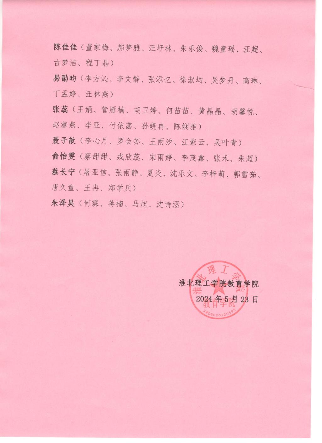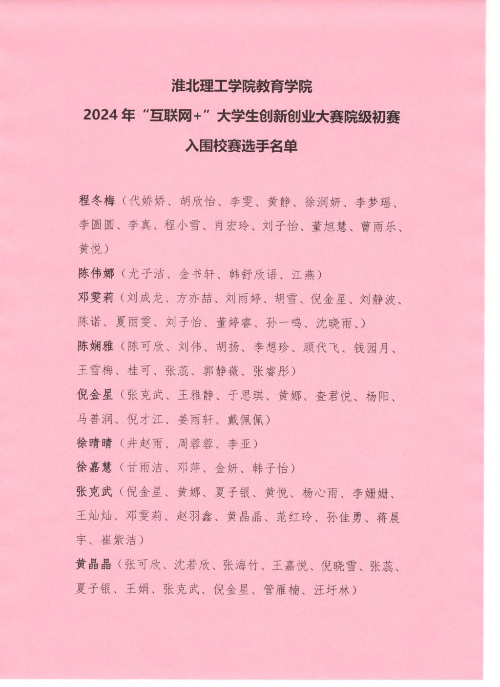 教育学院2024年“互联网+”大学生创新创业大赛院级初赛入围校赛选手名单