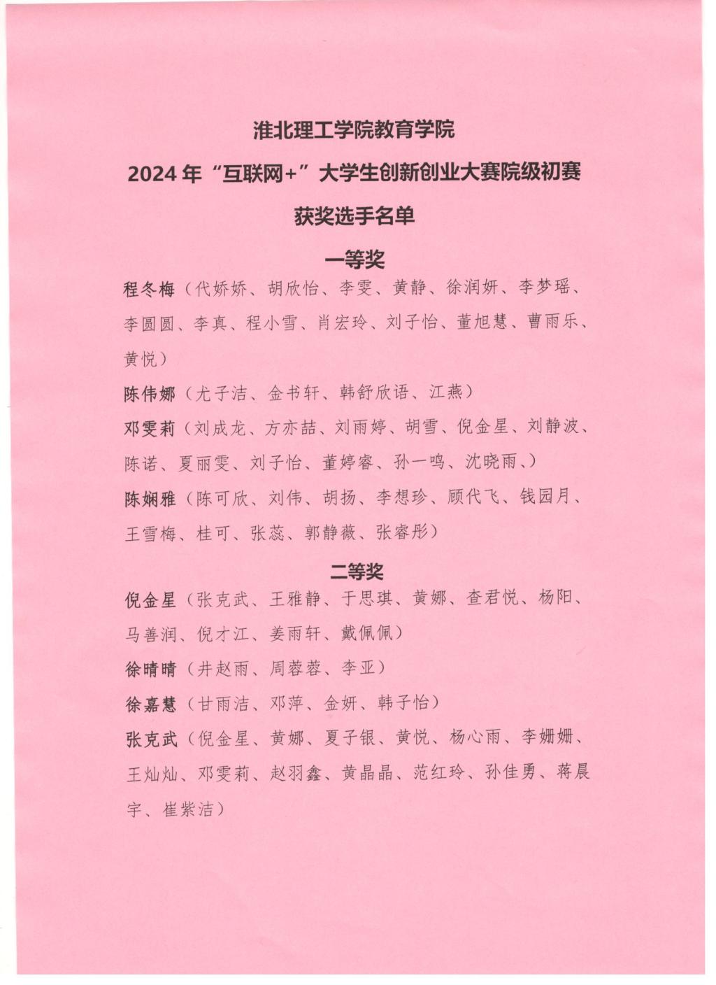 教育学院2024年“互联网+”大学生创新创业大赛院级初赛获奖选手名单