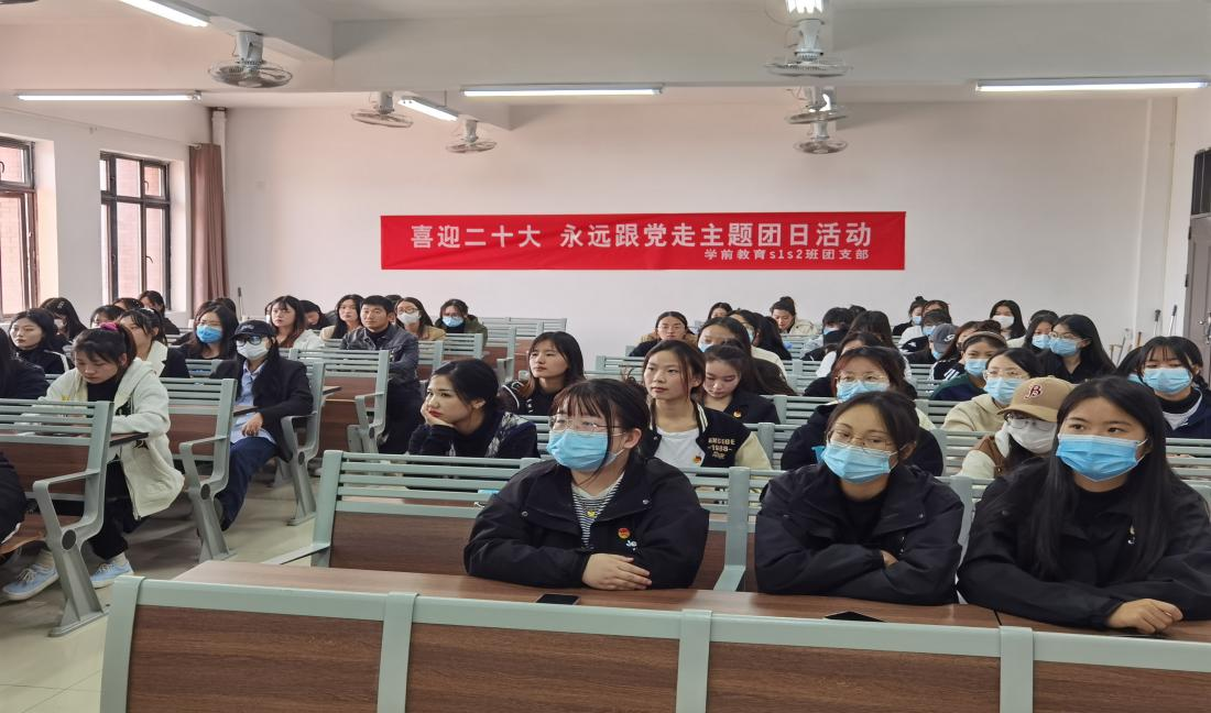 为更加深入学习党和国家事业取得的历史性成就,了解习近平总书记对青年的殷切期望,团结引领学院广大学子,以昂扬向上的精神风貌建功新时代,以实际行动迎接党的二十大胜利召开。10月12日,教育学院2022级学前教育专升本1班和2班团支部开展“喜迎二十大、永远跟党走”主题团日活动,活动由2022级学前教育专升本2班刘双同学主持。