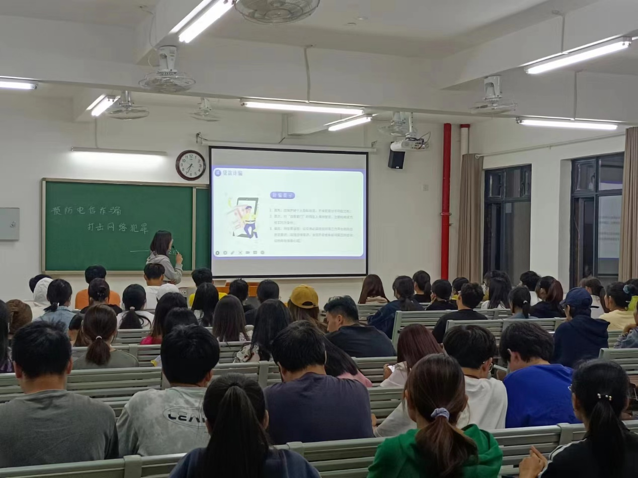 防诈反诈理论知识是筑起防范诈骗的第一道防线。9月21日晚,教育学院组织各班级开展以“防范电信诈骗,打击网络犯罪”为主题的班会活动。本次会议由各班级团支书组织召开,通过PPT介绍目前诈骗的主要类别有:电信诈骗、贷款诈骗、赌博诈骗、网络诈骗,并就不同类别讲解常见的诈骗手段,观看防诈骗宣传视频,交流防范诈骗的方法,强调防诈骗要做到“六个一律,八个凡事”,以此来加深同学们对诈骗的防范心理。本次班级主题班会加强了我院青年大学生对于防范电信诈骗的意识。