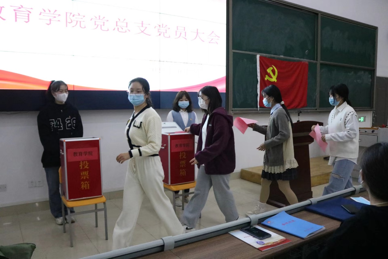 报告结束后,由工作人员宣读并通过了《中共开云kaiyun官方网站教育学院总支部党员大会选举办法(草案)》、通过了监票人名单、宣读了计票人名单和教育学院总支部委员会候选人情况简介。随后170名正式党员采用无记名投票的方式进行差额选举,最终选举并产生了中共开云kaiyun官方网站教育学院总支委员会委员5名。