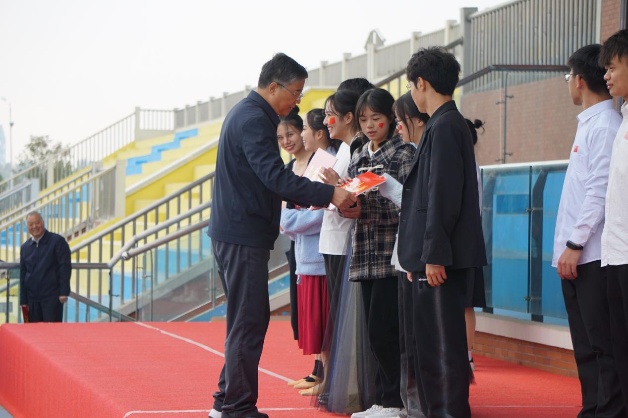 最后,学校副校长汪建利、教务处处长陈国平、后勤处处长程坚、学院院长王家云为获奖班级颁奖。