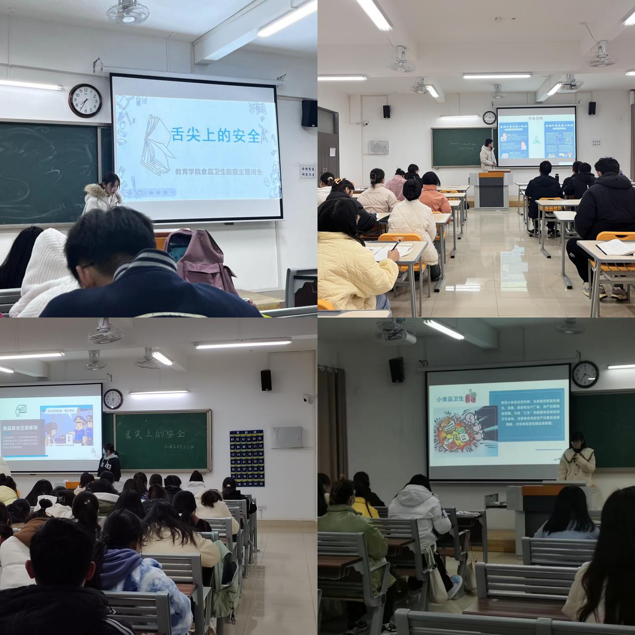 食品安全关乎民生,更关乎广大师生的身体健康。为进一步加强校园食品安全宣传和疫情防控工作,有效防范食品安全风险,教育学院2022级各专业49个班级于11月下旬在1号教学楼召开食品卫生防疫主题班会。