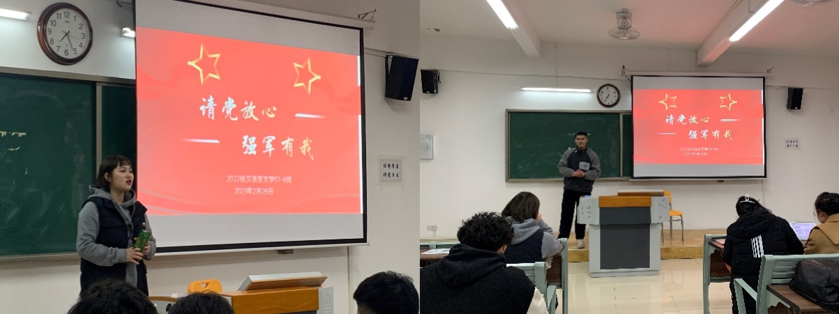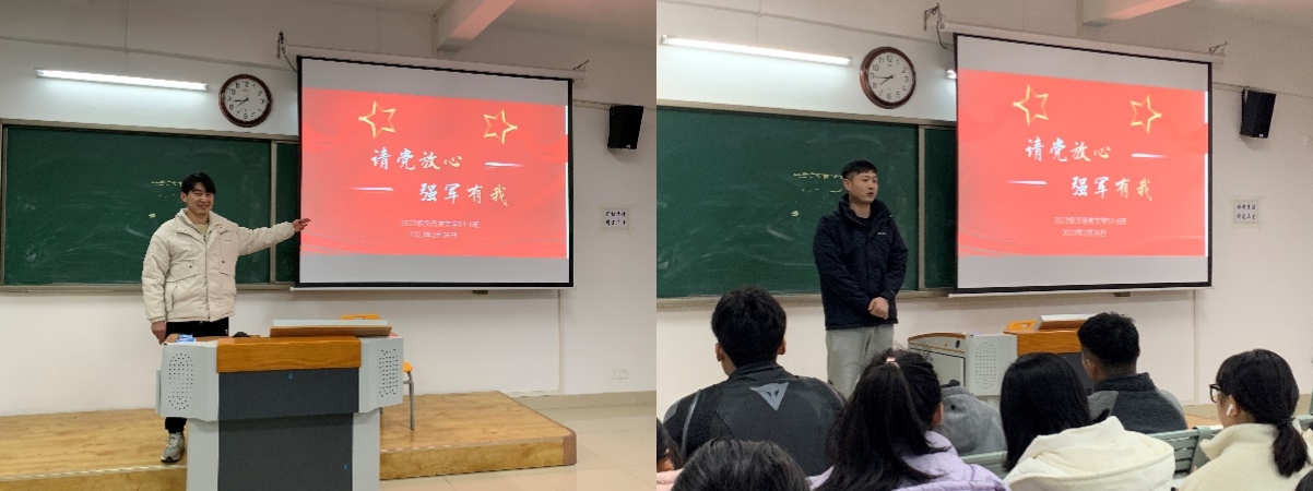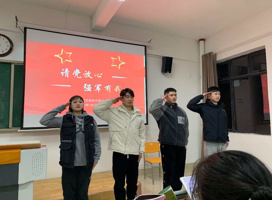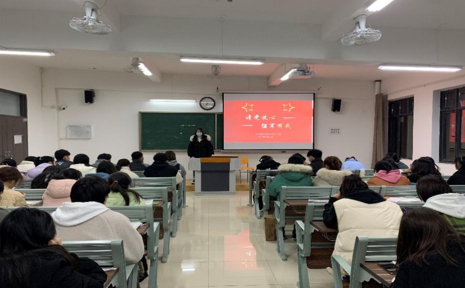 为做好在校大学生应征入伍政策宣传活动,2023年2月26日,教育学院辅导员李应华组织2022级汉语言文学专业专升本1-6班学生开展“请党放心,强军有我——大学生征兵入伍政策宣传”主题班会。