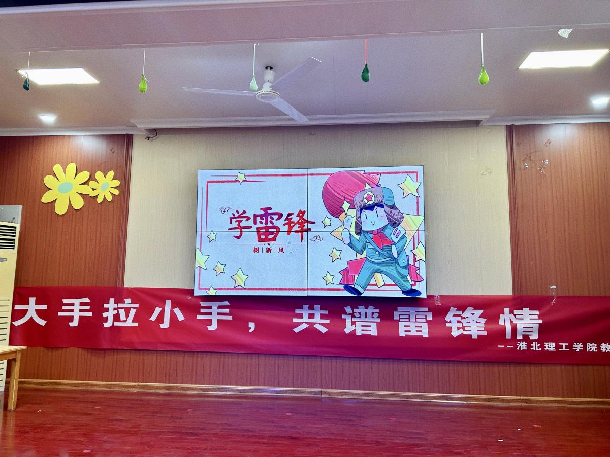 为进一步发扬雷锋精神,弘扬社会正能量,用榜样力量点燃新时代希望,传承红色基因,将雷锋精神与爱国情怀厚植于幼儿心中。教育学院于3月1日下午3点举办“大手拉小手,共谱雷锋情”走进幼儿园雷锋志愿活动。活动由学院辅导员郭鸿鑫、孙虎老师带领8名学前教育专业的学生前往淮北市商业局幼儿园开展活动。
