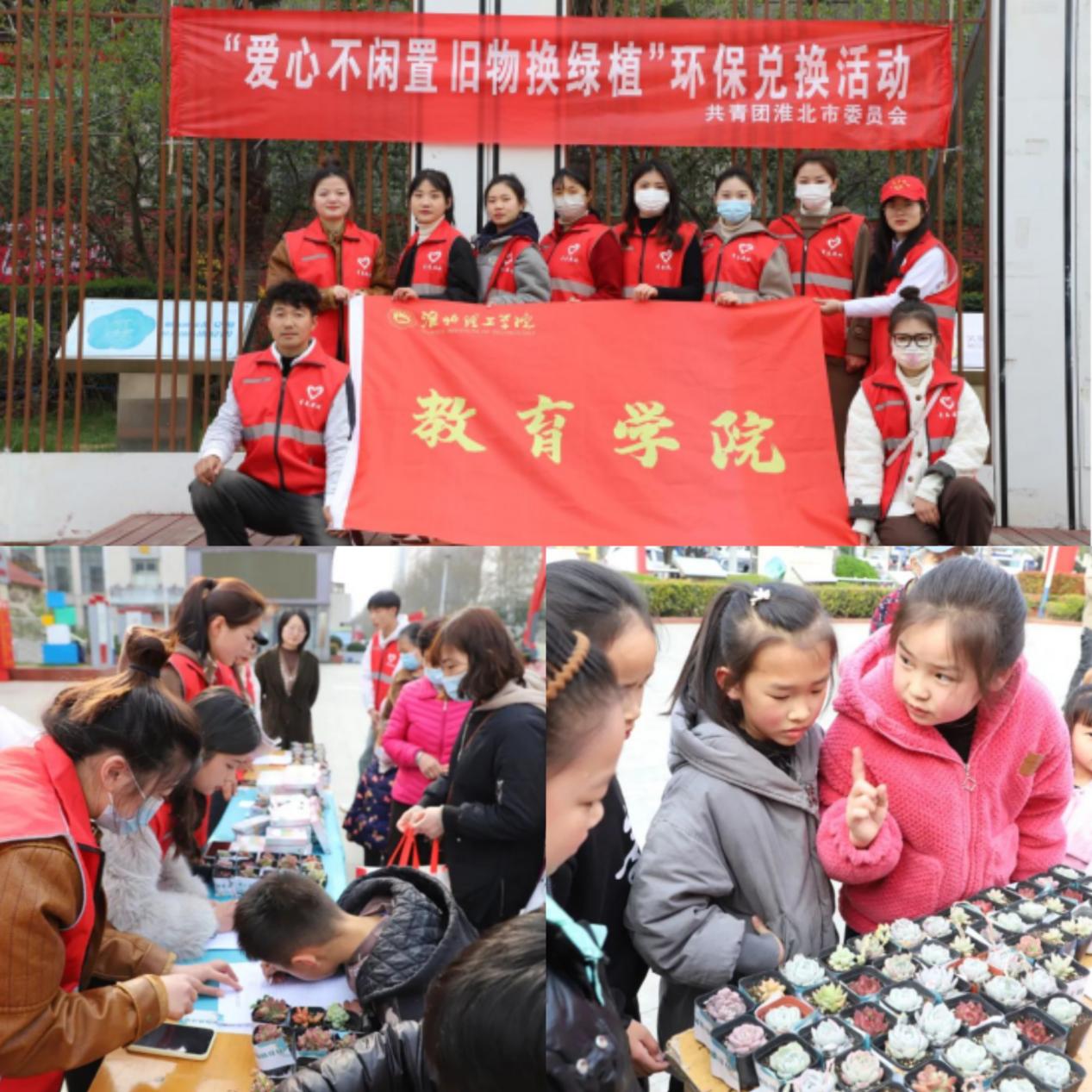 3月18日下午,教育学院组织学生志愿者积极参加团市委组织地走进社区志愿服务活动,活动以爱心和环保为主题,开展“爱心不闲置 旧物换绿植”活动。志愿者们利用课余时间带着绿植来到社区,鼓励青少年朋友用旧书、废纸、空水瓶等废旧物品兑换绿植,志愿者们在置换活动中积极向大家宣传垃圾分类,让闲置物品发挥作用等方面,号召更多的人加入环保的行列,为春天增添一抹绿色。