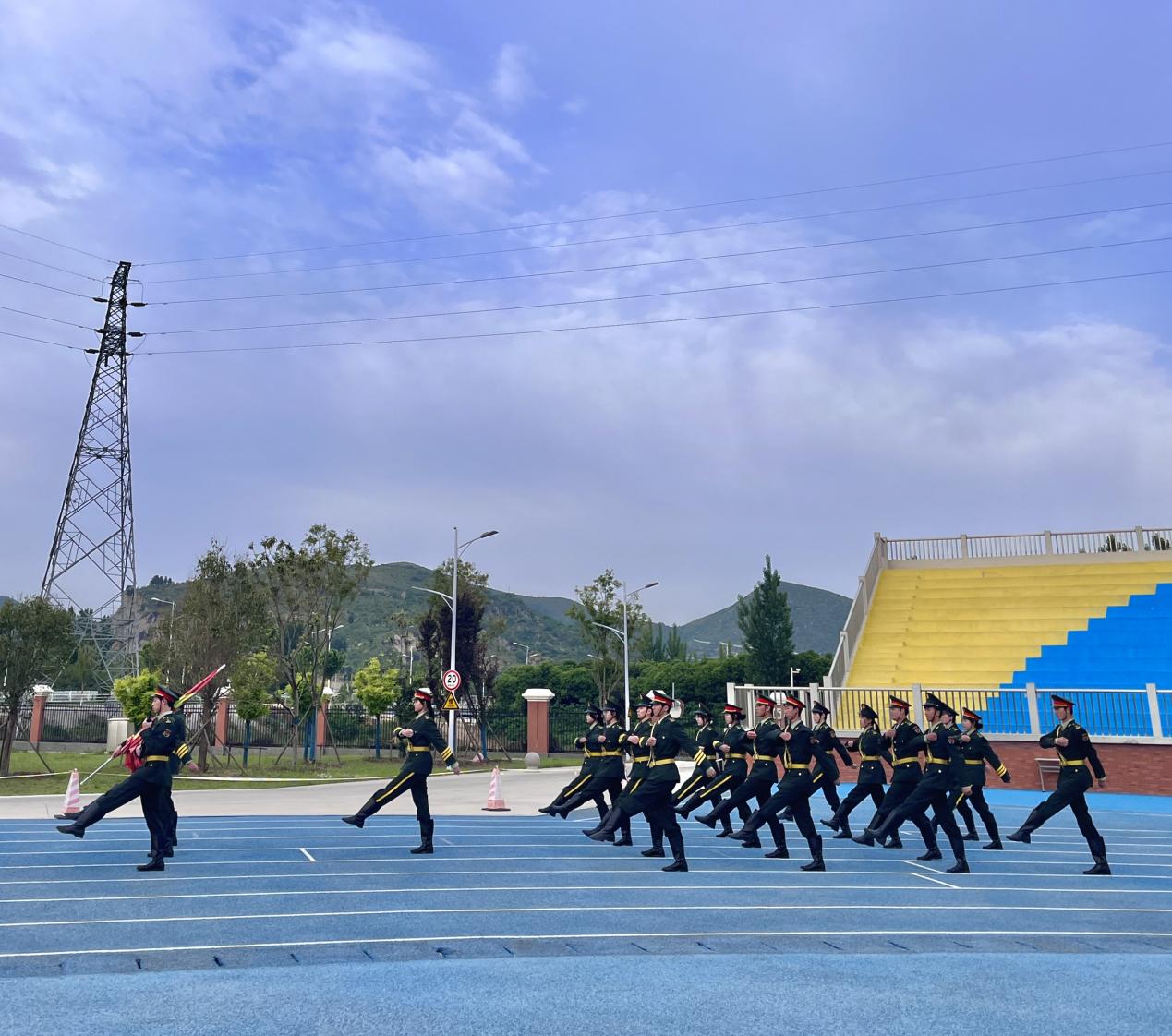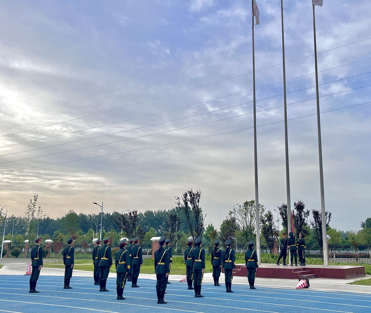 随后,国旗护卫队庄严入场,旗手们着装整齐,步伐矫健,在庄严的国歌声中五星红旗冉冉升起;全体师生肃立注目,高唱国歌,表达对伟大祖国的深情祝福。