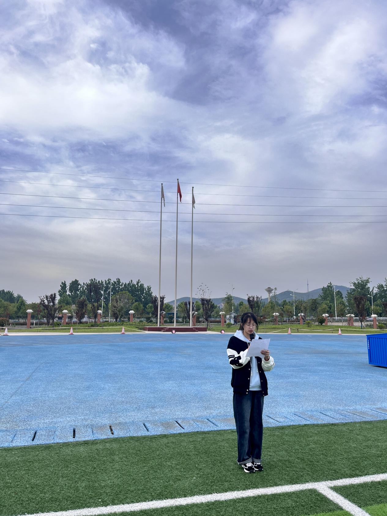 升旗礼毕,王小雨和张豪同学进行了国旗下演讲。2022级数学与应用数学2班王小雨同学通过对古往今来诗词的讲解,向同学们阐述劳动的重要性,“民生在勤,勤则不匮”,劳动不是一个口号,它是人民真真切切的改善生活,改造自然的能力,是人民昂扬向上的精神风貌,是一种道德品质和精神追求。她从自身出发,指出不可借忙之名行惰之实。2022级数学应用数学3班张豪在演讲中阐述了大学生在尽责中成长的重要性,号召大家强化使命担当,增强社会责任感和历史使命感,树立正确的劳动观,崇尚劳动、尊重劳动,增强对劳动人民的感情,报效国家,奉献社会。