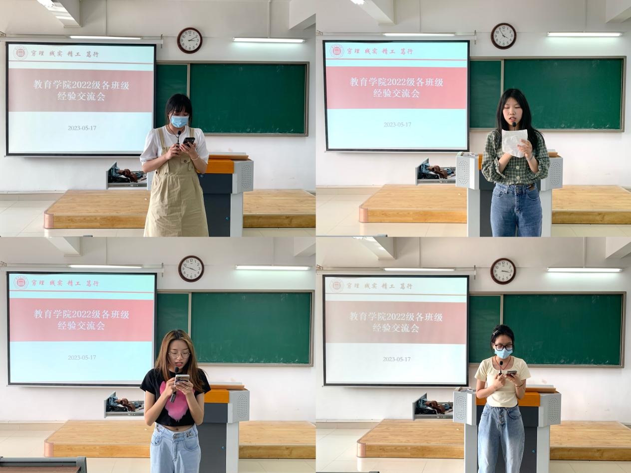 为进一步促进班级间的沟通交流,加强班级管理建设,激发班级活力,营造互助和谐、积极向上的班级文化氛围。5月17日下午,教育学院在1号教学楼420教室召开班级经验交流分享会。学院分管副书记孟向红、团总支副书记许海涛、辅导员张颖颖、郭鸿鑫及22级全体班长、团支书参加会议,会议由团总支副书记许海涛主持。
