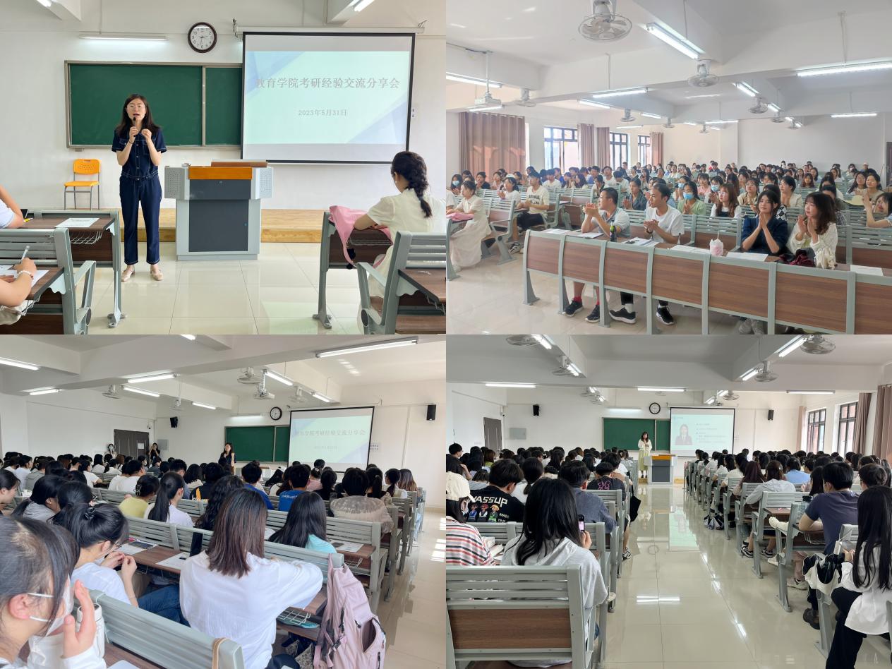 为了帮助同学们更好地了解当前考研形势,确立合适的考研目标、掌握科学的备考方法、及时做好学业规划,5月31日下午,教育学院在2号教学楼423召开2023届考研经验交流分享会。本次活动邀请了2023年考取研究生的杜蓉蓉等6位学生为学弟学妹们分享考研经验,分享会由学院团总支书记黄莹莹主持,2022级专升本和2021级普本部分同学参加了会议。