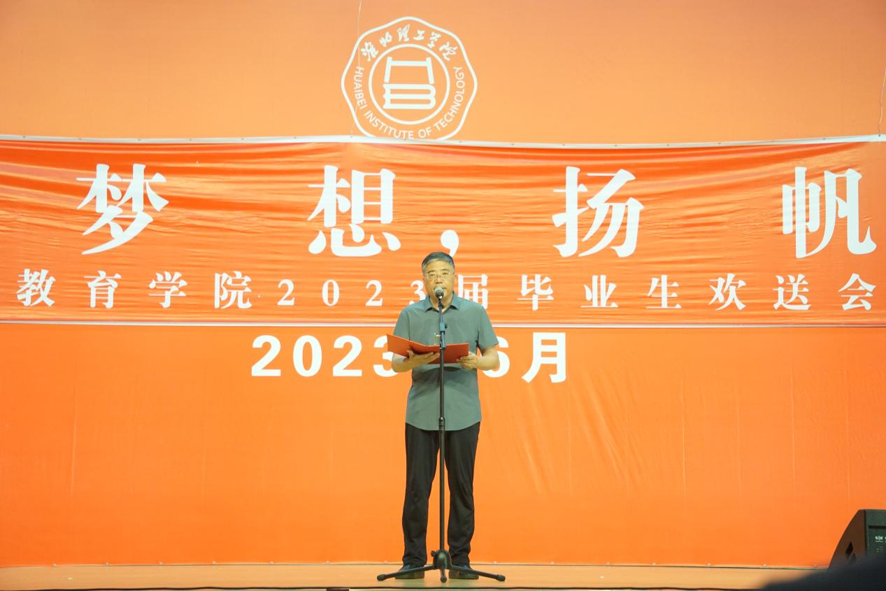毕业骊歌起,青春将远航。6月18日晚,教育学院在学校体育馆举行“放飞梦想,扬帆起航”2023届毕业生欢送会。学校副校长汪建利、郑来纪,学生处处长孙增响、招生办主任(学生处副处长)张拓,校团委书记刘帅克,学院院长、党总支书记王家云,党总支副书记孟向红以及教育学院全体辅导员参加了毕业生欢送会。