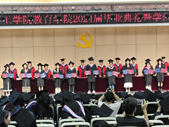 最后,副校长汪建利代表学校向圆满完成学业的毕业生们表示热烈祝贺,他介绍了学校专业建设和发展情况,并对教育学院在人才培养方面取得的成果表示肯定。鼓励大家做敢想敢为又善作善成的新时代好青年。同时他还表示,母校永远是同学们的坚强后盾和温暖港湾,希望同学们能够常回家看看。
