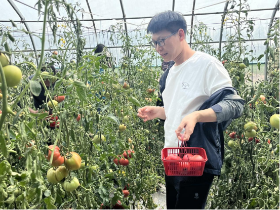 下午,教职工们抵达迦南农场后,迅速在领队的指挥下整齐列队,面带笑容地完成了合影留念。然后,大家兴致勃勃地开启了对农场的参观之旅。参观完毕,教职工们迫不及待地投入采摘番茄的活动中。走进番茄园,一排排整齐的番茄藤上挂满了红彤彤的果实,宛如一个个小灯笼,惹人喜爱。大家穿梭在藤架之间,小心翼翼地采摘着成熟的番茄,脸上洋溢着丰收的喜悦。采摘过程中,大家互相交流着采摘技巧,欢声笑语回荡在番茄园里,现场气氛热烈而欢快。采摘结束后,每个人都收获满满,提着一篮子新鲜的番茄,成就感十足。