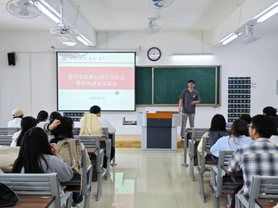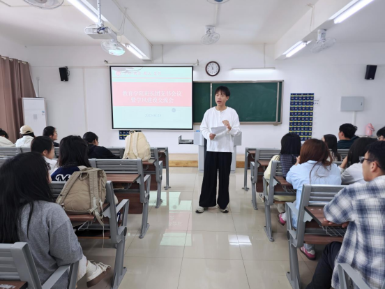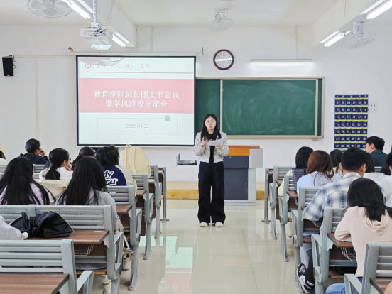 为强化学生骨干队伍建设,提升班长、团支书的综合管理能力与班级学风建设工作,教育学院于4月23日中午在2教422室召开了四月份班长、团支书工作例会。会议由教育学院团总支书记许海涛主持,教育学院2023级、2024级辅导员和各班班长、团支书参加了此次会议。