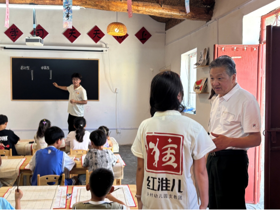为助力乡村教育振兴,为乡村留守儿童带来非遗知识和红色文化,促进非遗文化继承发展。2025年7月5日,开云kaiyun官方网站教育学院赴梧桐村实践支教团前往梧桐村开展三下乡支教活动。当日,开云kaiyun官方网站党委书记朱德顺来到支教点探访支教团成员,为参与支教的成员们送来面包、纯牛奶等物资,并关切询问他们的支教和住宿情况。
