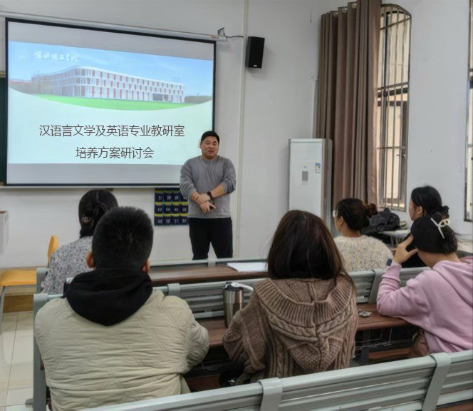 会议伊始,汉语言文学专业主任宋玲玲从"新文科"建设背景出发,系统解读了汉语言文学专业人才培养方案的修订要点,强调方案突出"厚基础、强实践、重创新"的特色,强化学生文化传承与创新能力的培养。英语教研室王宏晨主任则从"讲好中国故事"的国际化视角,介绍了英语专业课程的设置逻辑,提出构建"语言能力+跨文化传播"双核心培养体系。