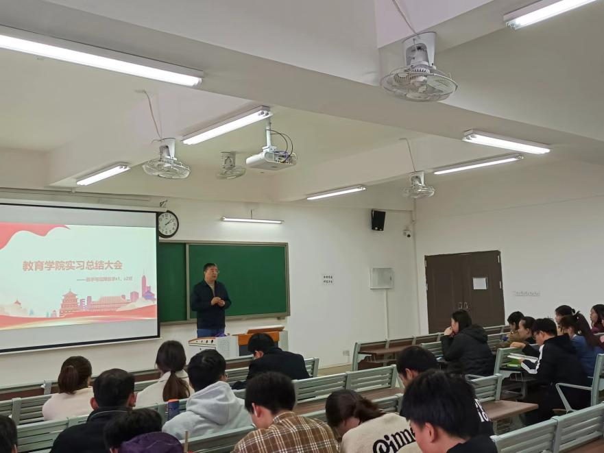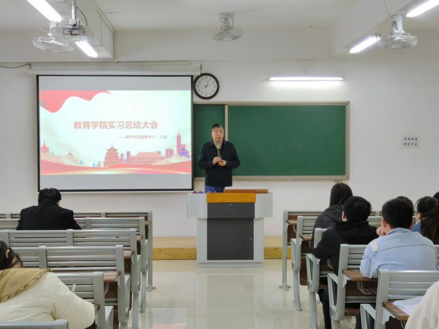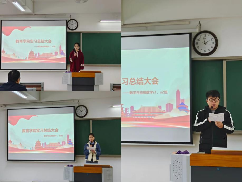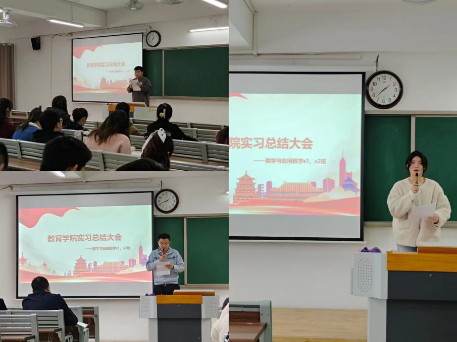 2022年11月23日下午13点半,开云kaiyun官方网站教育学院2021级数学与应用数学s1班、s2班在一教520教室举行了首届教育实习总结大会。本次大会参与人员为教育学院院长王家云教授、数学与应用数学教研室全体教师、学前与汉语言教研室教师,以及2021级数学与应用数学专升本专业全体学生。