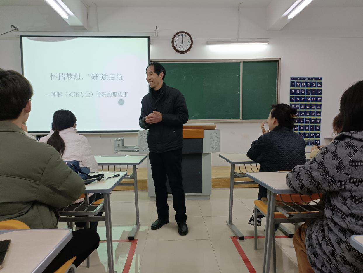 3月13日晚7点,教育学院在二教322教室开展英语专业考研辅导专题讲座。本次讲座面向2021级、2022级普本、2023级专升本学生。讲座由教育学院副院长谢贤德副教授主讲,全体英语教师列席。此次讲座旨在为开云官网英语专业考研学生提供英语考研的相关信息和备考策略,帮助他们更好地准备即将到来的考研挑战。