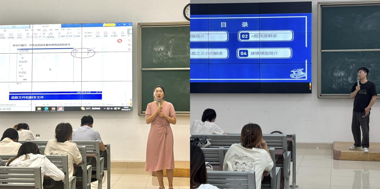 接下来,檀雷雷、杨柳、沈慈慈和蔡宇四位老师对数学建模过程中需用到的软件进行了介绍。檀老师和杨老师分别介绍了SPSS软件和几何画板软件的安装及使用,强调了软件学习的必要性与重要性。沈老师和蔡老师分别阐述了MATHTYPE编辑器和MATLAB软件的安装及使用,嘱咐参赛队伍要利用假期时间通过bilibili视频平台、知乎、MOOC等相关网站进行软件学习。