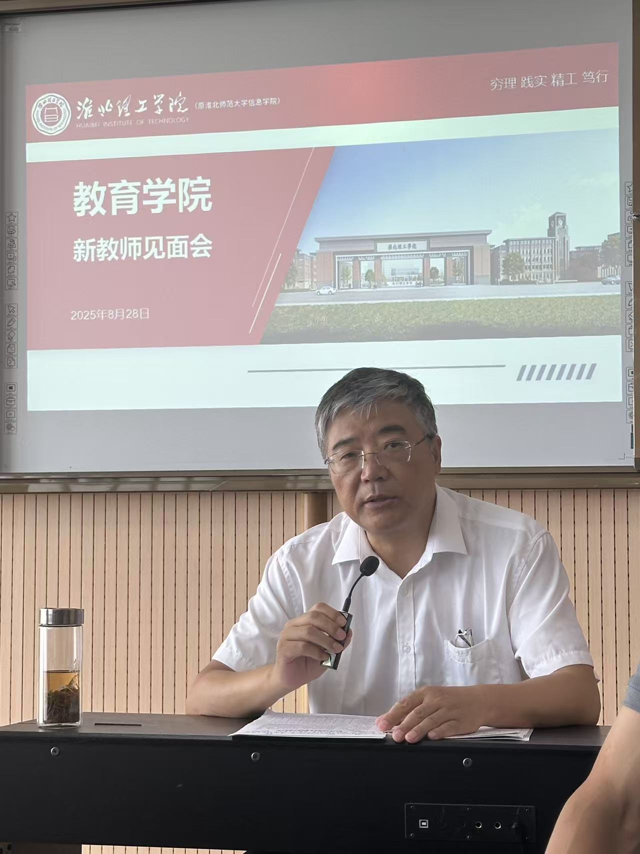 会议上,王家云院长在介绍学院基本情况时指出,教育学院作为学校最早设立的三个二级教学单位之一,设有4个本科专业和1个体育教学部,横跨文学、教育学、理学等3个学科,是可实现多学科交流互鉴的学院。学院青年教师占比高达90%,是一支充满活力、未来可期的队伍。他希望新入职教师牢记立德树人根本任务,尽快熟悉课程、严守课堂纪律、上好每一堂课;尽快融入团队,参与专业建设。王院长特别强调,学生培养是“共同体”事业,希望新教师能以自身经历引导学生发展,用真心真情助力学生成长,成为学生求学路上可靠的引路人。