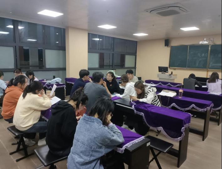 10月10日下午,教育学院汉语言文学专业学生第二党支部在艺术楼301教室开展党员学习研讨活动。活动由支部书记张颖颖同志主持,全体党员进行分组讨论学习。