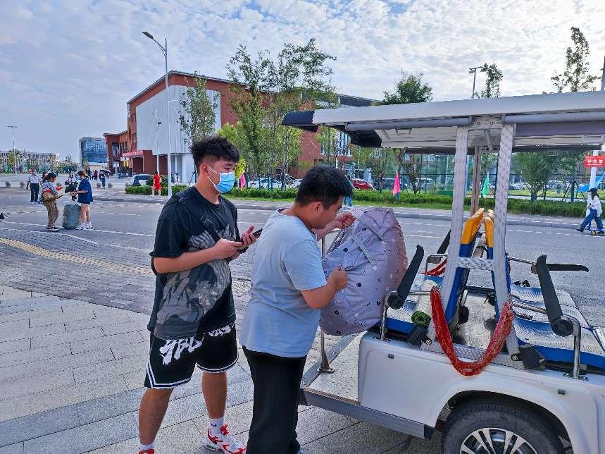迎新活动开始前,学生党支部提前部署,专人专岗,职责到人,确保迎新工作有组织、有纪律进行。自迎新活动开始,学校门口、体育馆、宿舍楼下处处可见学生党员忙碌的身影。熙熙攘攘的迎新人群,党员志愿者胸前熠熠生辉的党徽,展示了每一位党员高度的责任感和昂扬的精神面貌。他们井然有序地开展工作,以积极、热情和饱满的精神状态帮助新生搬运行李、引导新生有序报到。一声声暖心的问候、一句句耐心的解释,消除了新生初来乍到的陌生感,让大一新生有了家的归属感,也让在校门口守候的家长们多了一份安心和欣慰。