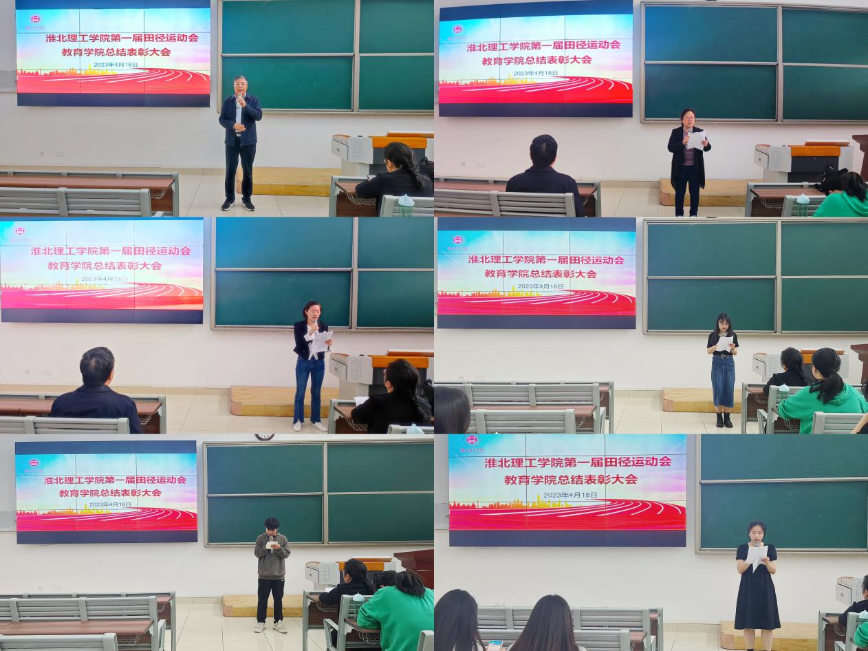 2023年4月18日下午,教育学院在1号教学楼121教室召开学校第一届田径运动会总结表彰大会。学院党总支书记(院长)王家云、分管副书记孟向红、团总支书记黄莹莹、全体辅导员、运动员及22级普本班级班长、团支书参加了会议,会议由团总支书记黄莹莹主持。