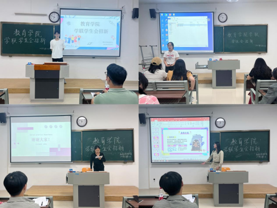 为丰富校园文化生活,发展学生会新成员,优化学生管理队伍建设,积极为23级新生提供才华展示、才能锻炼的舞台,9月22日下午6点,教育学院学联学生会招新活动在一号教学楼113、114、115教室进行,教育学院书记助理黄莹莹、团总支副书记许海涛、辅导员郭鸿鑫老师到达招新现场进行指导工作。