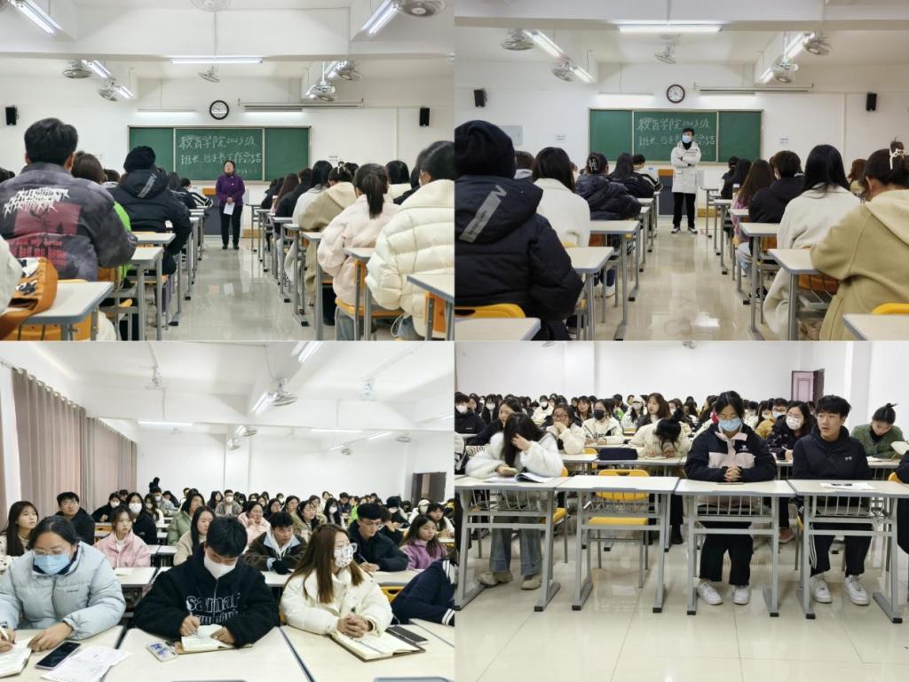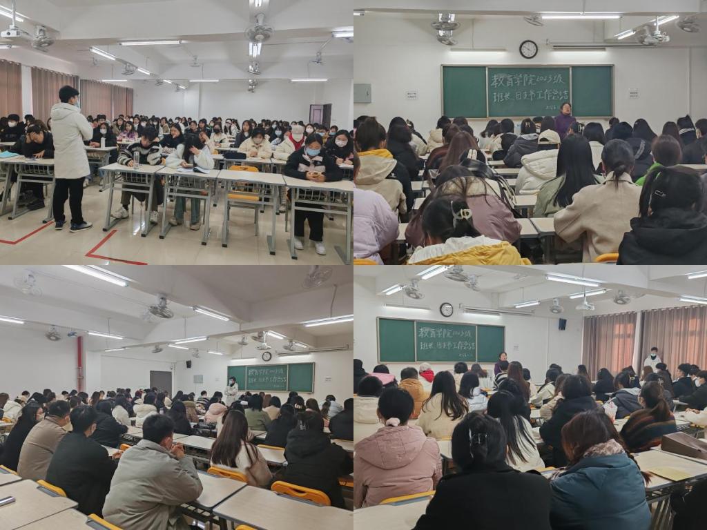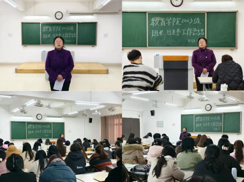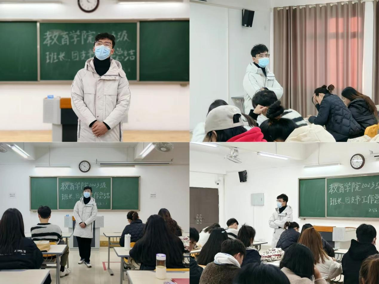 为促进各班工作协调,增强学生干部责任心,促进学院学生管理工作更好的开展。教育学院于12月6日下午在2号教学楼323教室召开2023级班长、团支书工作例会。会议由学院团总支副书记许海涛主持,分管副书记孟向红、2023级全体辅导员参加了会议。