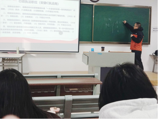 讲座期间,罗健老师还告诉同学们考公务员的重要性,并为同学们详细介绍了考公的科目内容与面试流程,为同学们积极备考打下了良好基础。