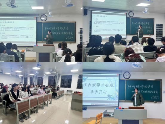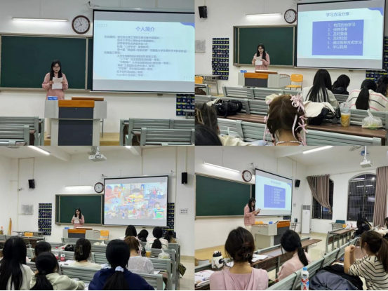 优秀学生代表们从分别专业课学习、学业规划、综合素质提升等方面分享了自己的经验。他们结合自身的学习经历,告诉同学们如何端正学习态度、如何认真上课每堂课、如何利用好课余时间复习巩固以及如何把握四六级考试节奏等。他们还分享了自己参加课余活动和各类学科竞赛的经验,课余活动和各类学科竞赛既能锻炼个人和团队协作能力,还能增加社会实践经验,在自己成长进步的同时学习身边同学长处和闪光点,为自己的综合素质能力提升打下基础。分享会上,学长们强调了明确目标的重要性,希望学弟学妹提前规划好发展方向,以梦为马,不负韶华。