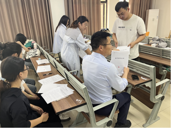 在试讲面试环节,16名来自汉语言文学、数学与应用数学、英语等专业的毕业生依次登台,围绕学科知识点展开10分钟模拟授课。他们以扎实的专业功底、创新的教学设计和生动的课堂互动,充分展现了教育学院学子过硬的教学技能与职业素养。濉溪县未来高级中学评审组从教学内容、课堂把控、语言表达等多维度进行考评,试讲结束后与学院7名毕业生现场签订劳动合同,包括语文3人、政治1人、历史1人和数学2人。